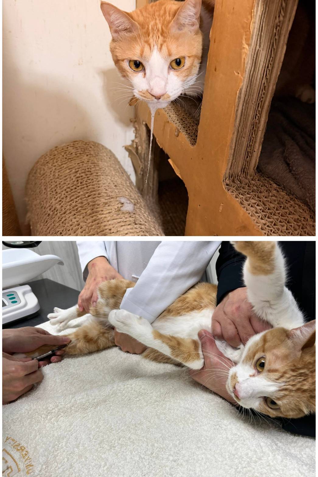 2026年2月4日因小喵喵連續多日嘔吐且精神食慾不振因此安排於沐恩醫院看診,因為咳嗽安排照X光,肺部狀況正常,心臟比上一次圓一點,X光心臟變比較圓可能是他變胖的關係,要注意體重,咳嗽部分再觀察是否為過敏,後因5日持續未進食且口吐泡沫流口水,再次臨時回診。到院後小喵喵肛溫是39.4,還不到發燒的階段,但有比昨天2月4日上升(昨天38.4)因此安排留院觀察,直到2月5日小喵喵吃得不是很理想,因此安裝鼻餵管。住院一個禮拜後已恢復自主進食便於2026年2月12日出院,醫師表示小喵喵可任食,但飲食種類須盡量單純,會吃就不要一直變換食物,目前狀況不需回診,但若精神食慾變差則提前聯繫醫院。