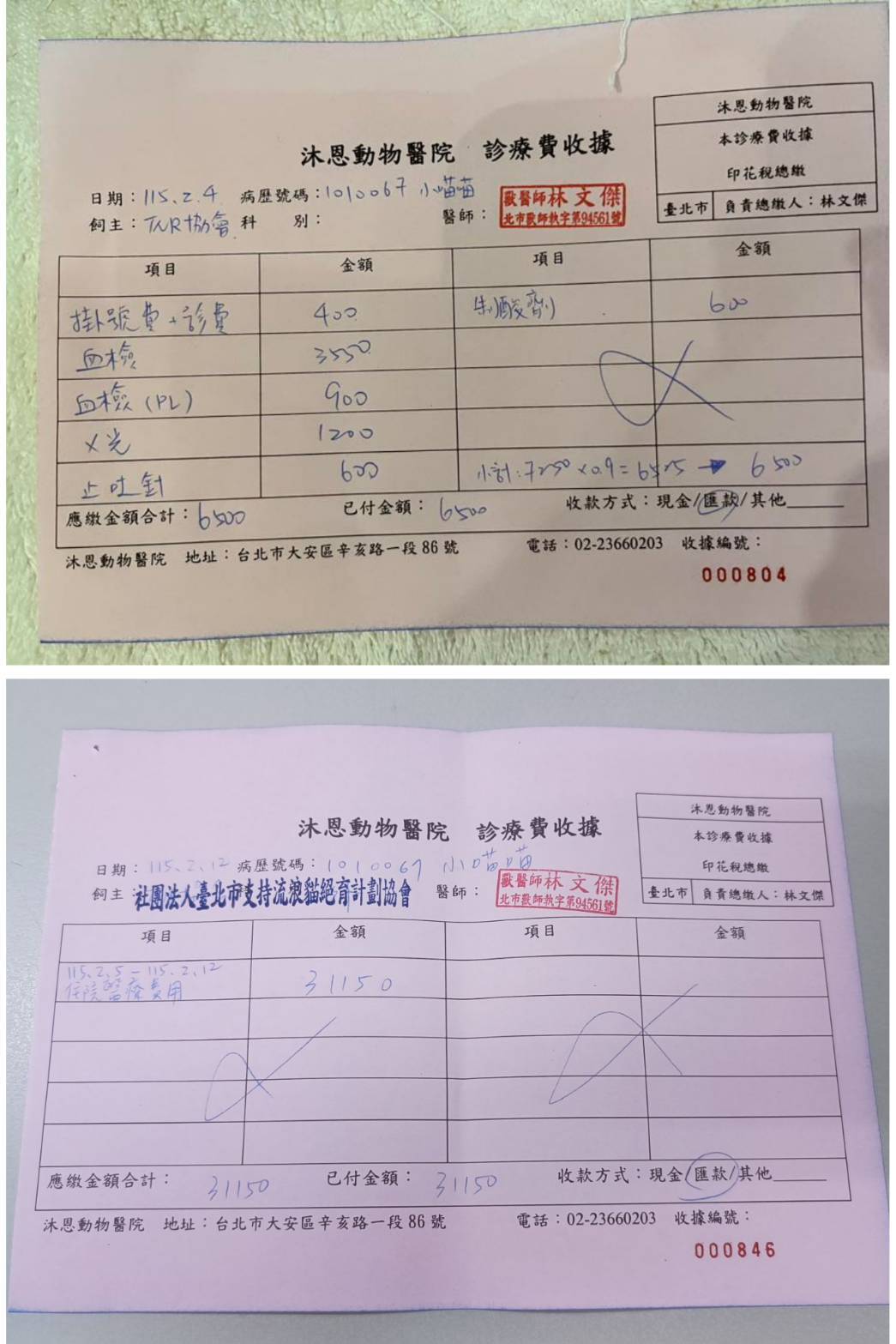 小喵喵從小歷經幾次性命危急的難關、幾次大大小小的手術,但他還是很活潑樂觀的努力著要活下去,讓人萬分心疼,也希望他的健康能依直保持穩定、開心享受安養之家的幸福生活,本筆醫助是2026年2月4日至2026年2月12日於沐恩醫院看診的費用,包含住院、血檢、X光及用藥。