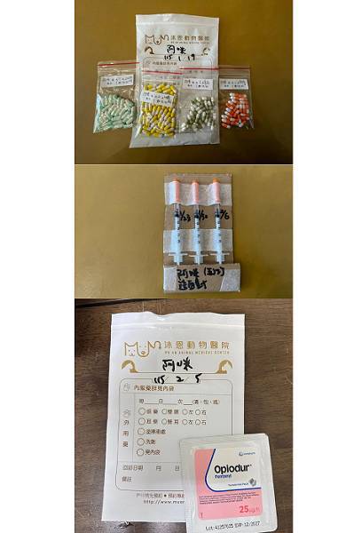 在2024年1月間阿咪因體型明顯變瘦,於2024年1月5日至沐恩醫院檢查,血檢結果腎指數及肝指數都高、有些脫水,口腔檢查發現左上犬齒牙齦腫起一包並有一個小傷口,X光檢查胸腔腹腔沒有明顯異常,整體檢查結果,主要是腎衰及牙周問題,只是在脫水及腎臟問題未處理好之前,不宜接受麻醉手術,所以先打皮下輸液、吃食促,二週後回診紅血球指數下降及磷上升指數,增加打造血針及吃降磷藥,治療至內科狀況較為穩定後,於2024年3月19日進行牙周手術,因腎指數仍是較高、麻醉手術不宜過長時間,所以手術只拔除狀況較差的四顆牙齒,完成牙周手術後仍持續回診治療肝腎指數問題,為了幫助阿咪的健康能更穩定,也開始做胜肽治療。
