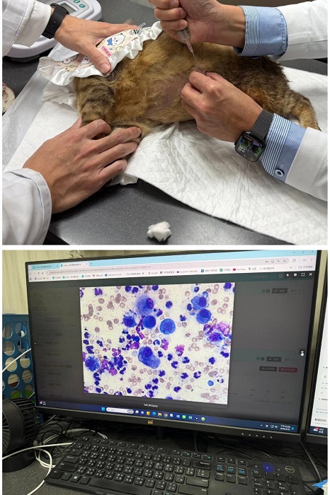 2026年1月22日於沐恩看診,因近兩週發現巴克身上出現小肉瘤,且左側腹肉瘤變大並突然變大變色,因此提前回診。檢查結果只抽出少許組織液,在顯微鏡下細胞雖然活躍,但若以貓咪的年紀研判應該不像不好的東西。由於巴克重度癱瘓,只會往右轉,長年都固定側臥同一姿勢(左半身朝下),比較像是長期摩擦造成細小傷口引起發炎,組織液可能較濃稠無法用針抽出,先開12天抗生素試看看是否可消腫。2026年2月3日回診,醫師提醒巴克體重持續上升須減重減少食量,此次巴克追蹤左側腹腫塊,因右腦神經受創,會不由自主往右轉,左側容易摩擦造成小傷口形成腫塊。餵食抗生素12天後,腫塊已慢慢縮小,需再吃兩週抗生素,吃至皮膚完全平整再停。