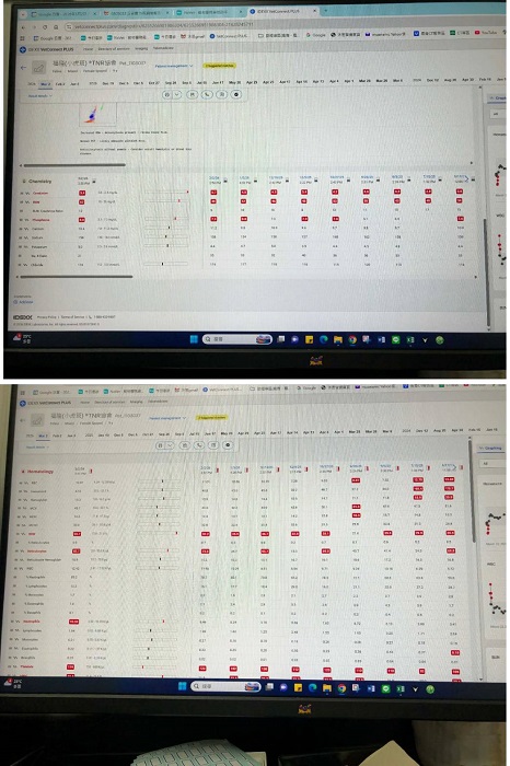 此次於2025年9月5日回診,今進行胜肽治療,然因腎指數飆高無法施打鎮靜劑,故此次沒有進行X光拍攝。近期再於9月26日回診,腎指數還是有點高,但因體重有變重,還在可接受範圍。但紅血球數偏低,需打造血針並持續觀察。後於2025年10月27日回診,腎指數依然超出指數需持續用藥。