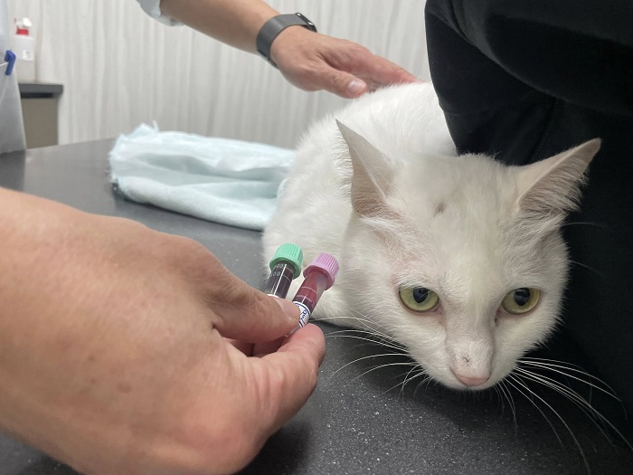 因小白多日有嘔吐狀況所以在2026年2月4日於沐恩回診,血檢顯示胰臟炎陰性但鉀離子低,是因沒吃東西造成。造血指數高為有正常造血,先在醫院打林格氏150cc及制酸針、止吐針,醫師表示若持續未自主進食需灌食,早晚10g 飼料粉加胰寶半顆及20cc水,目前白甘蔗已逐漸恢復正常。