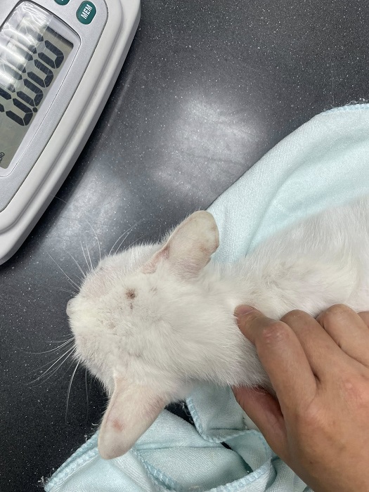 主題: 皮膚黴菌治療的白甘蔗 申請者姓名: TNR協會 花色: 白色 申請日期: 2026-04-09 11:50:00 申請者部落格: https://www.facebook.com/SupportTNR/?locale=zh_TW 申請者臉書網址: https://www.facebook.com/SupportTNR/?locale=zh_TW 所在縣市/合作醫院: 台北市/沐恩動物醫院 治療費用: 6900元 需求名額: 23人 平均每單位: 300元 已報名名額: 0 尚需求名額: 23 報名人員: 候補人員: 因考慮無人遞補、轉匯收費、信用卡刷卡匯率、寄送收據與郵資等成本,每筆醫助人數將斟酌彈性增加1-5位名額。 動物病情說明: Ganza白是來自貢寮區的小貓,協會多年來持續在該區執行TNR及提供各種給貓咪的物資用品,在2021年10月中旬,當地一位愛媽託人協助幫忙餵食兩週,代理餵養人通報協會附近仍有貓咪未紮,於是工作人員在10月12日前往察看,發現有母帶子貓咪,其中一隻小白貓的右後腿拖行走路,志工將腳傷小白貓誘捕就醫,結果同胎另隻也是小白貓一起進了誘捕籠,便將二貓一起帶走,但母貓驚慌躲避沒有捉到,擇日再進行誘捕絕育。