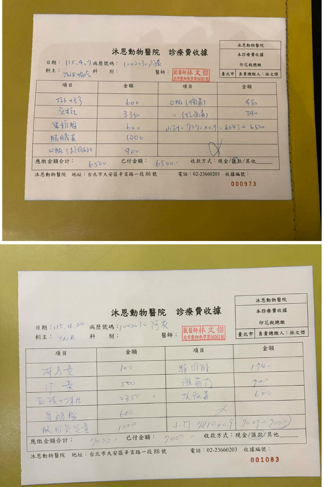 至目前阿灰的食慾精神都不錯,除了吃藥,照護員也每日幫阿灰清潔刷洗皮膚,阿灰的皮膚及口炎舌炎狀況反反覆覆,也是因為在來到安養之家之前,食物與環境條件都不好,造成健康很不穩定,幸好他的個性乖巧,在漫長的治療過程沒有讓他遭受太多壓力,還有安養之家給予的優質照護,讓阿灰每天過得開心又幸福,他總是一副淡然卻又呆呆的模樣,加上耳血腫手術後耳朵翻起來,增添了莫名的喜感,非常可愛討喜。本筆醫助是阿灰自2026年4月7日至2026年4月20日間於沐恩醫院的費用,包含回診、血檢及用藥。