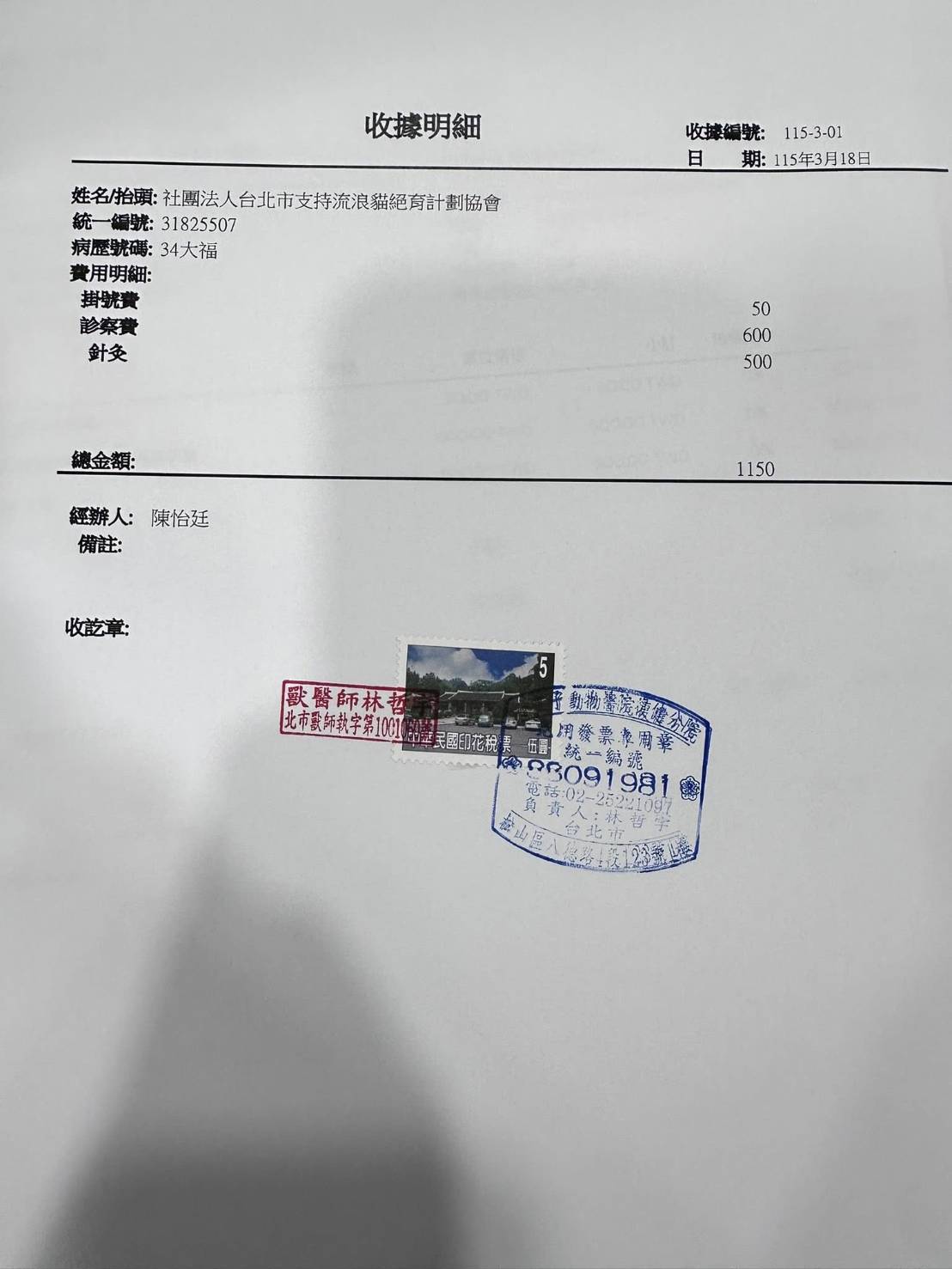 收據可抵稅請將地址mail至cashier@tnrtw.org0912940006763
