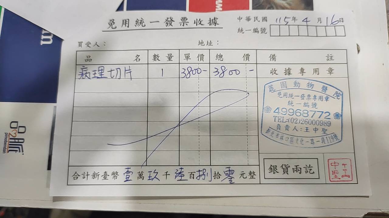 本筆醫助為黑虎2026年4月16日於麗園動物醫院進行手術的費用,