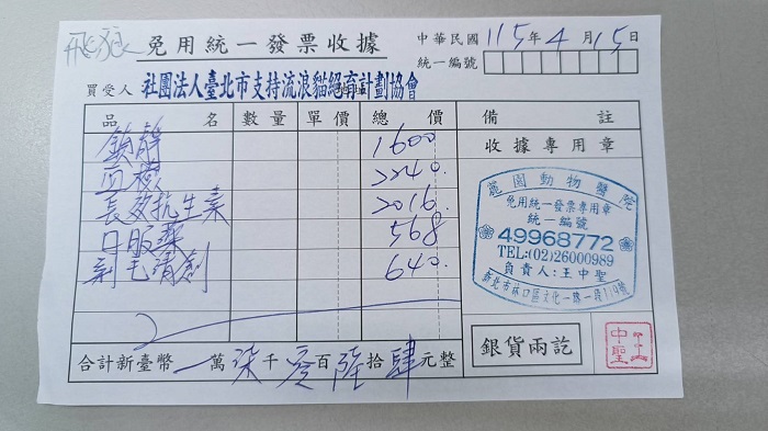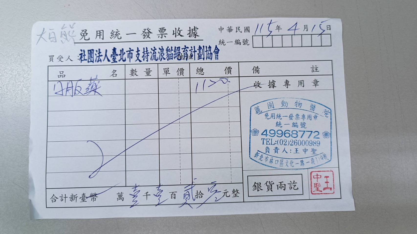 戶名:社團法人臺北市支持流浪貓絕育計劃協會