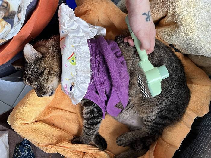 因妙咪多數是在皮膚癢舔啃時發作癲癇,於是自2023年3月間開始,於長青醫院的回診,由皮膚科與神經科醫師共同檢查,寄望皮膚狀況改善後也能減少癲癇發作情形。