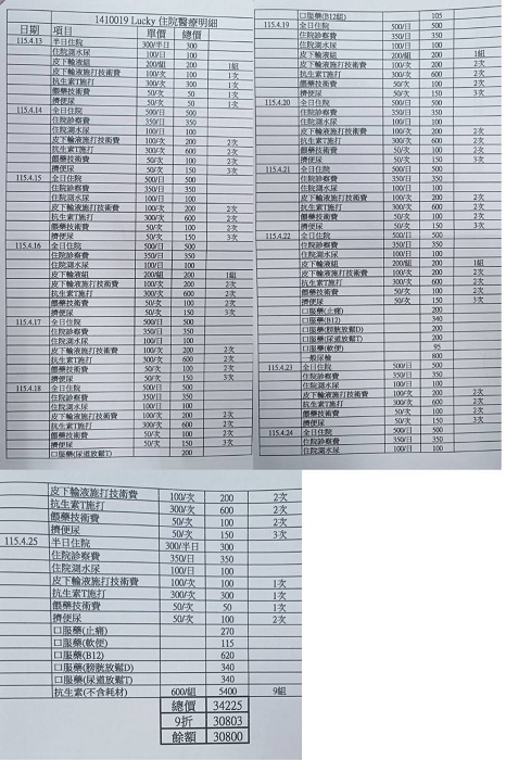 2026/4/17 Lucky 沐恩住院回報
