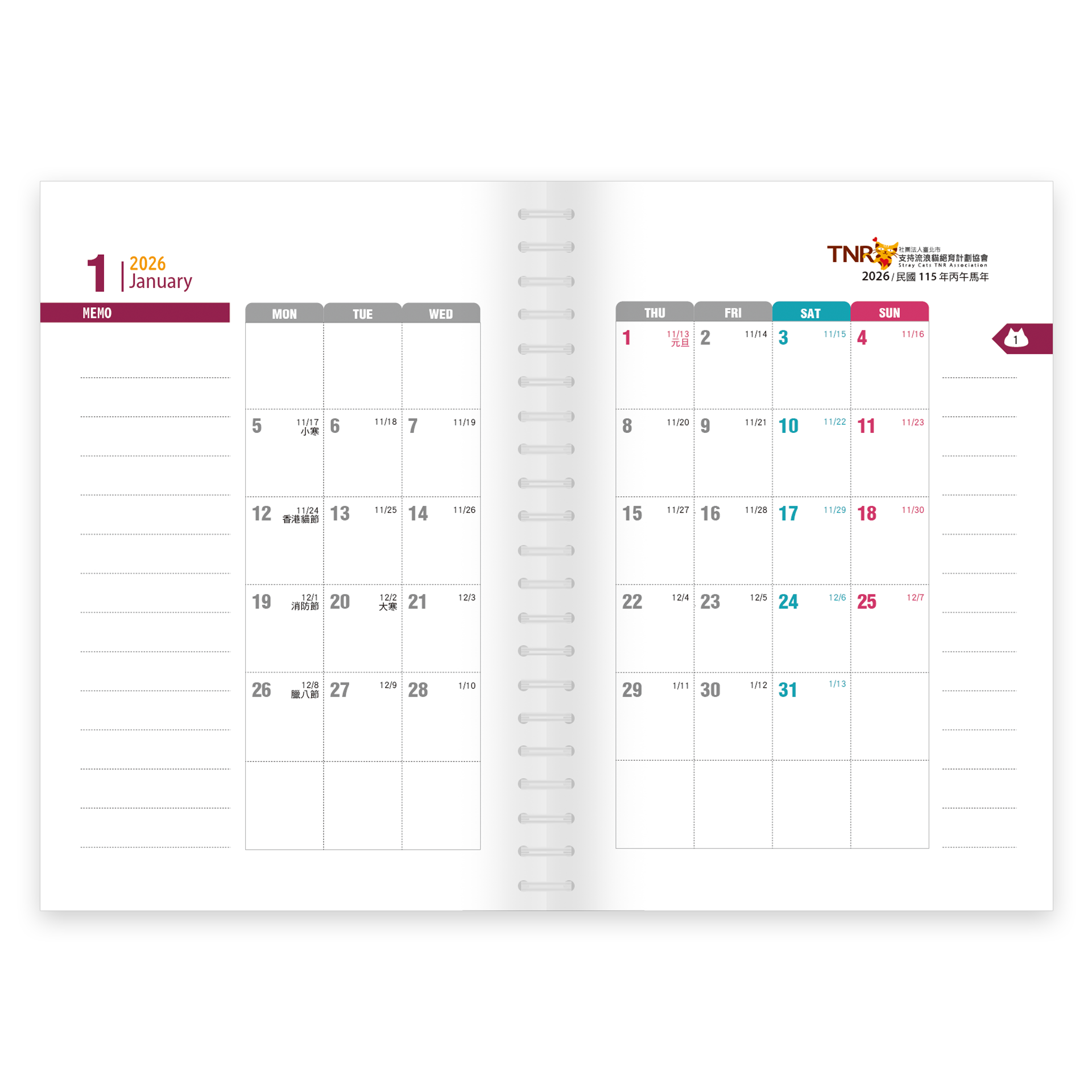 正、反皆有筆記欄位,彩印成環狀筆記本