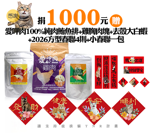 贈品名稱: 捐1000元贈愛呷肉100%純肉鮪魚排+雞胸肉塊+去殼大白蝦+2026方型春聯4則+小春聯一包 贈品總數: 30人 每人捐款金額: 1000元 已報名名額: 0 尚需求名額: 30 報名人員: 候補人員: 說明: 捐1000元贈愛呷肉100%純肉鮪魚排+雞胸肉塊+去殼大白蝦+2026方型春聯4則+小春聯一包