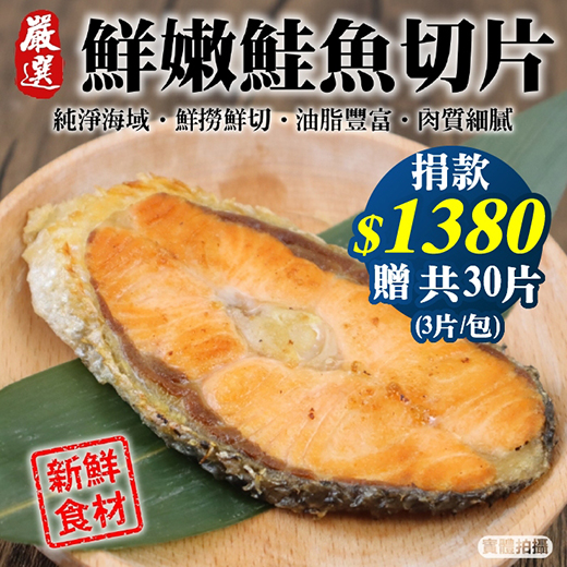 候補人員: 說明: 捐1380元贈嚴選智利鮭魚切片30片組