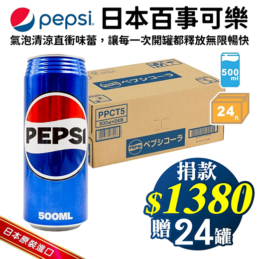 候補人員: 說明: 捐1380元贈日本境內版 Pepsi百事可樂500ml X24瓶組
