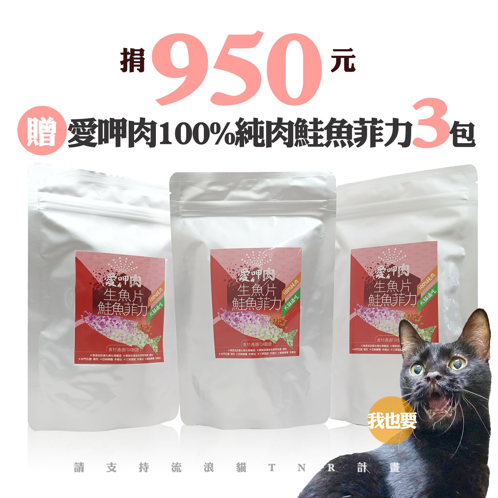 贈品名稱: 捐950元贈愛呷肉100%純肉鮭魚菲力(35g)三包 贈品總數: 60人 每人捐款金額: 950元 已報名名額: 0 尚需求名額: 60 報名人員: 候補人員: 說明: 捐950元贈愛呷肉100%純肉鮭魚菲力(35g)三包