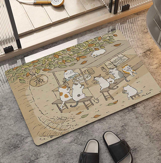 硅藻土地墊,40*60cm,止滑、吸水、快乾,可當腳踏墊、落砂墊、或是寵物餐墊,多種使用方式,圖案美觀可愛,皆為日式擬人貓生活。