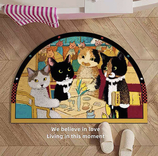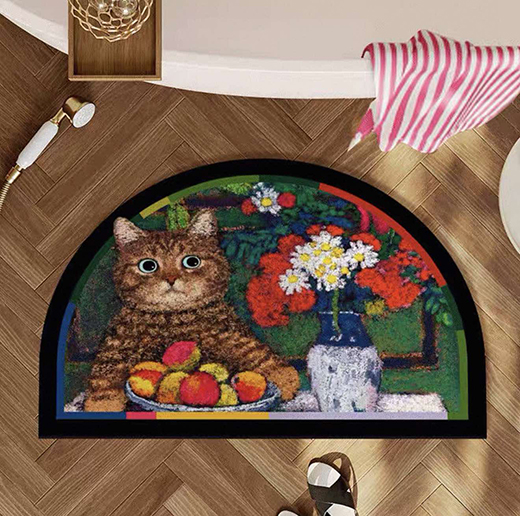 ●美國油畫風半圓形小喵硅藻土踏墊/落砂墊/餐墊不同款兩張(40*60 cm)●