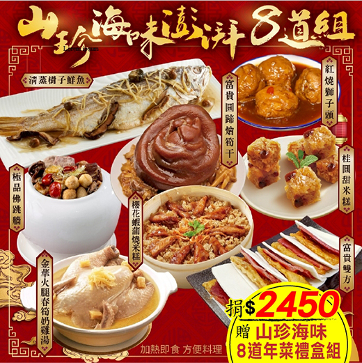 ●山珍海味澎湃8道年菜組(6菜2湯/適合8~12人)●