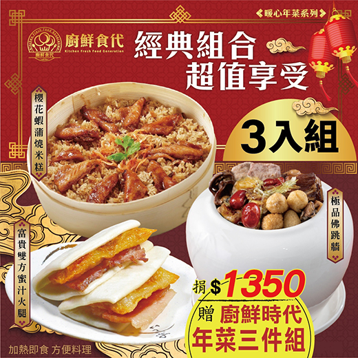 ●廚鮮食代年菜3道組A-佛跳牆+櫻花蝦蒲燒米糕+富貴雙方●