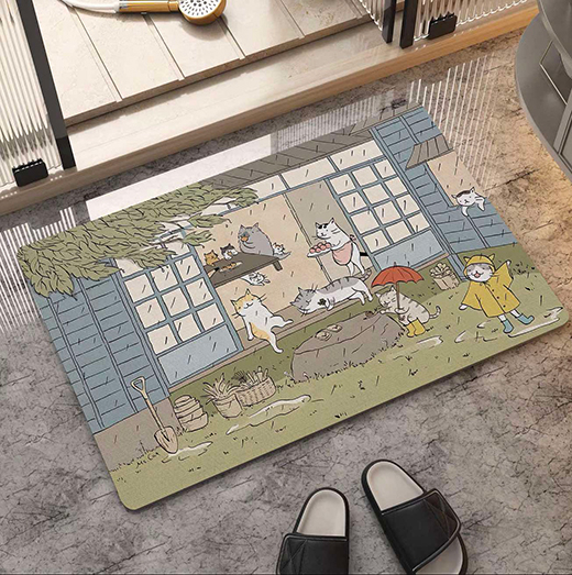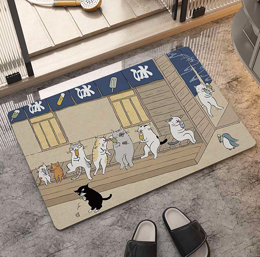 硅藻土地墊,40*60cm,止滑、吸水、快乾,可當腳踏墊、落砂墊、或是寵物餐墊,多種使用方式,圖案美觀可愛,皆為日式擬人貓生活。