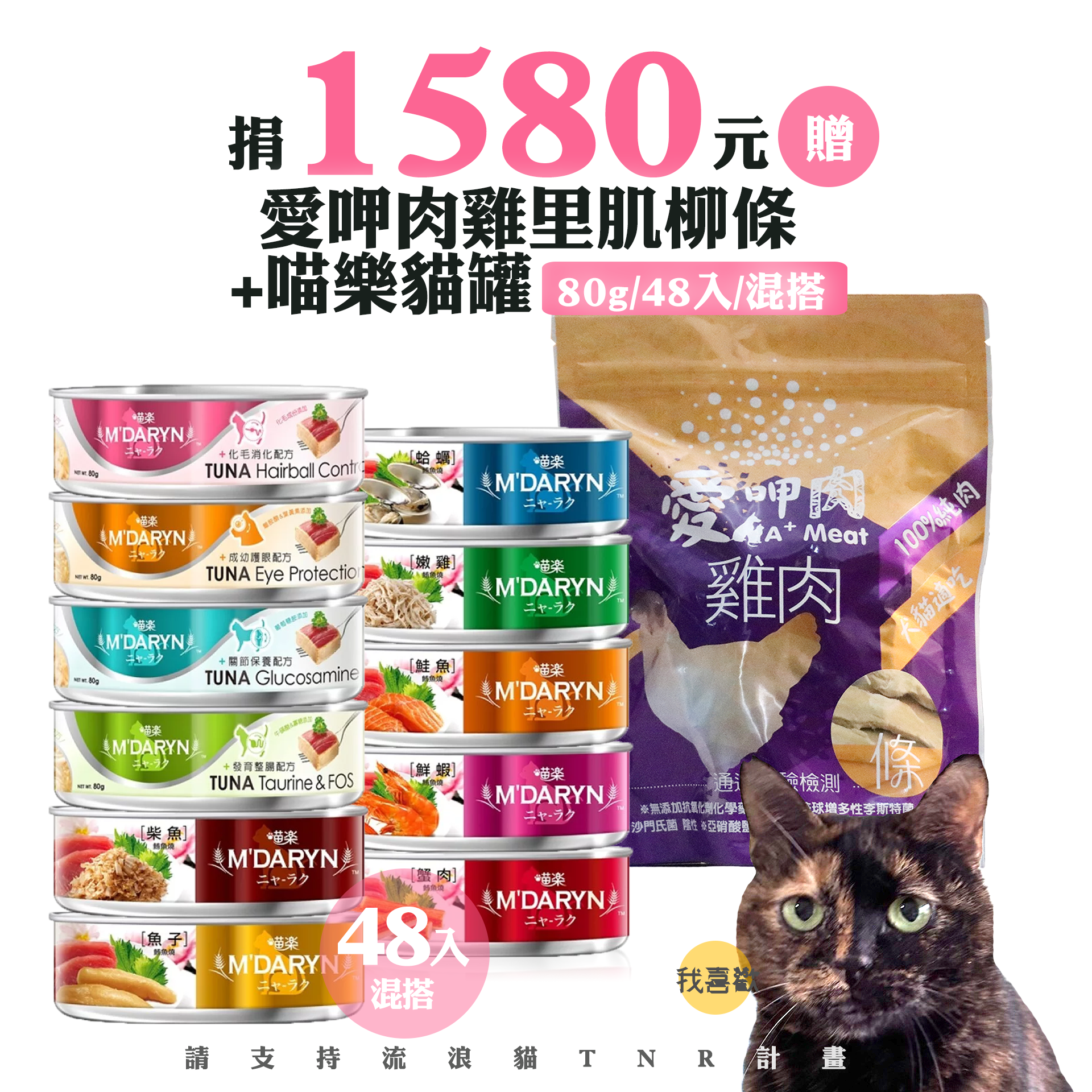 贈品名稱: 捐1580元贈愛呷肉雞里肌柳條+喵樂貓罐(80g/48入/混搭) 贈品總數: 50人 每人捐款金額: 1580元 已報名名額: 0 尚需求名額: 50 報名人員: 候補人員: 說明: 捐1580元贈愛呷肉雞里肌柳條+喵樂貓罐(80g/48入/混搭)