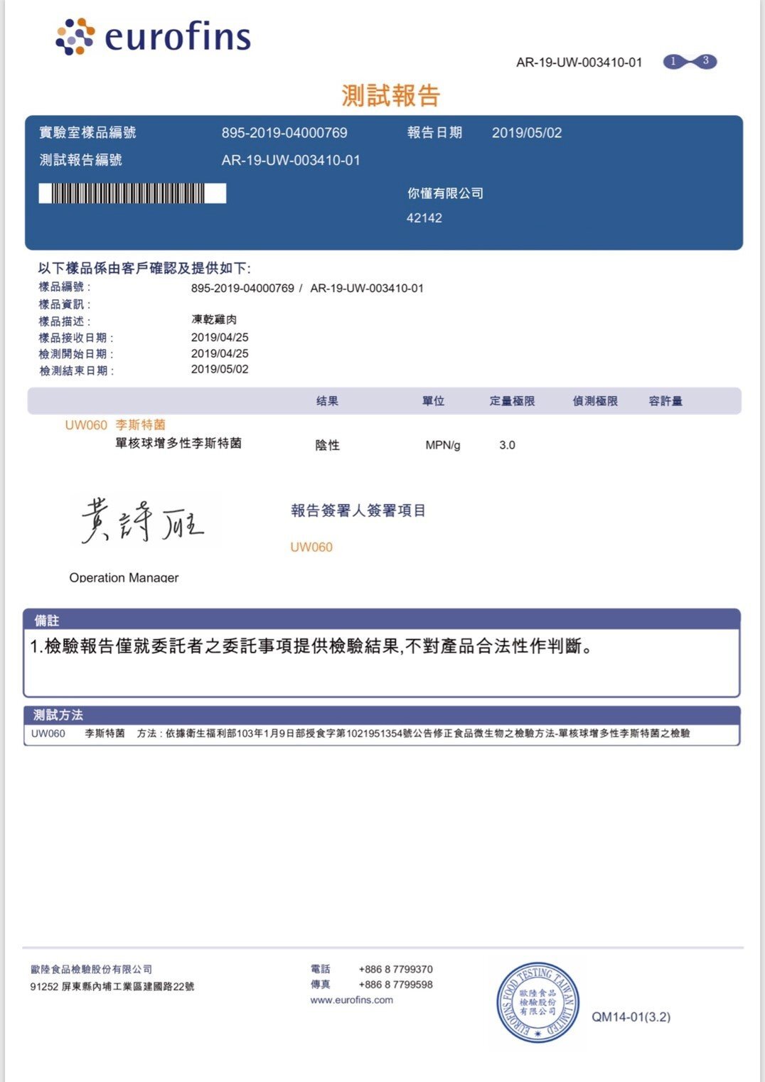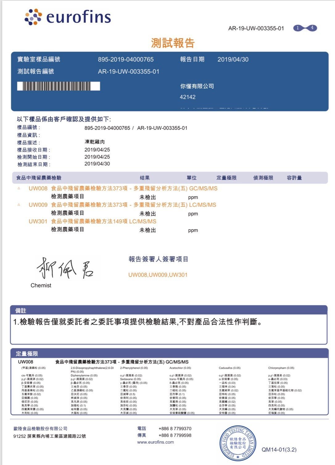 華國冷凍乾燥工廠登記編號 19850624