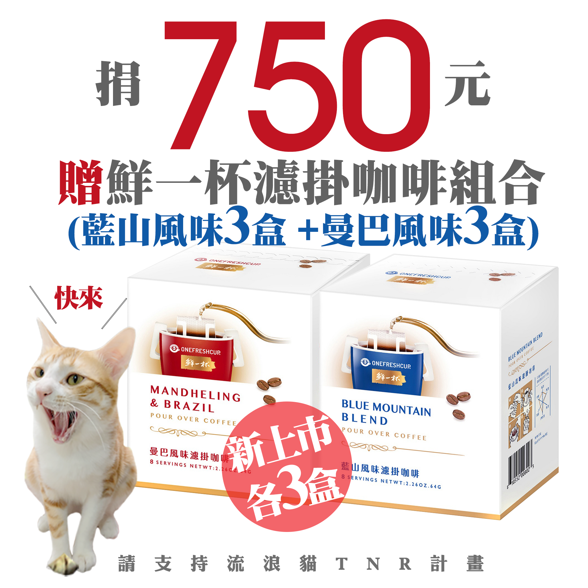 贈品名稱: 捐750元贈濾掛式咖啡禮盒(藍山風味3盒+曼巴風味3盒) 贈品總數: 50人 每人捐款金額: 750元 已報名名額: 0 尚需求名額: 50 報名人員: 候補人員: 說明: 捐750元贈濾掛式咖啡禮盒(藍山風味3盒+曼巴風味3盒)