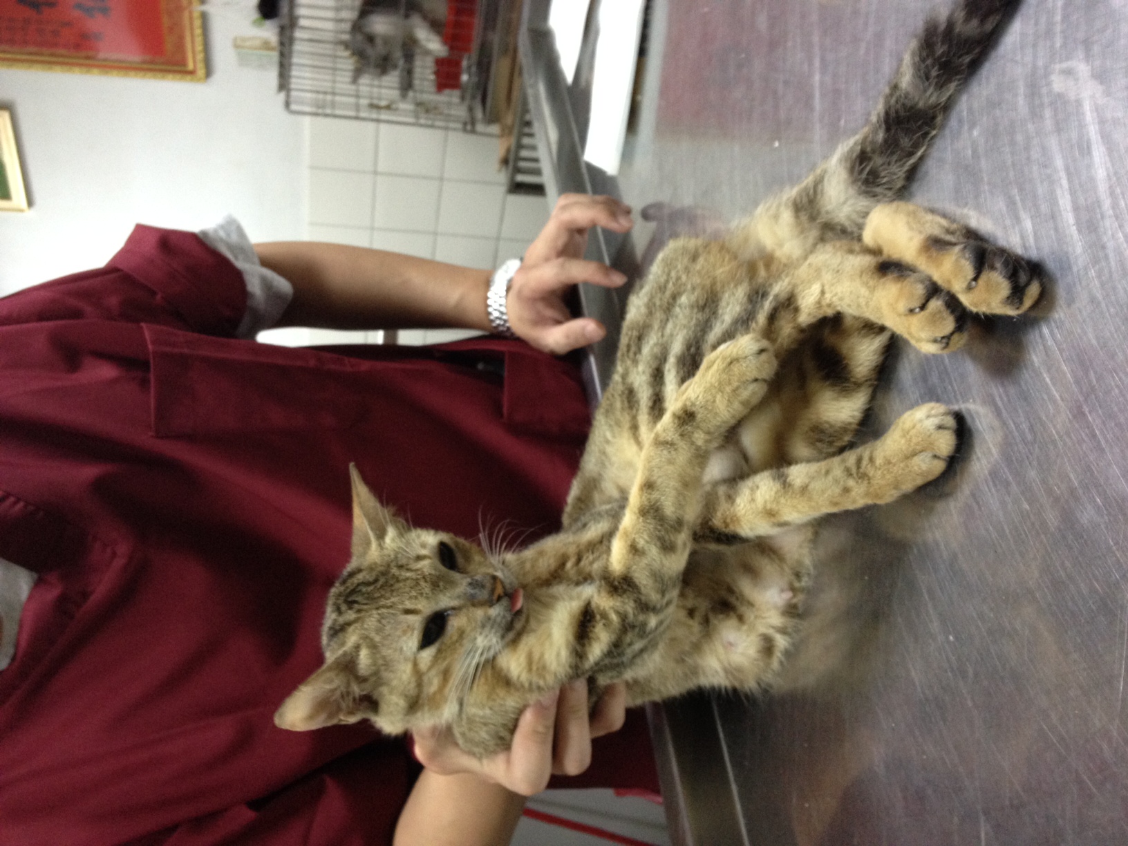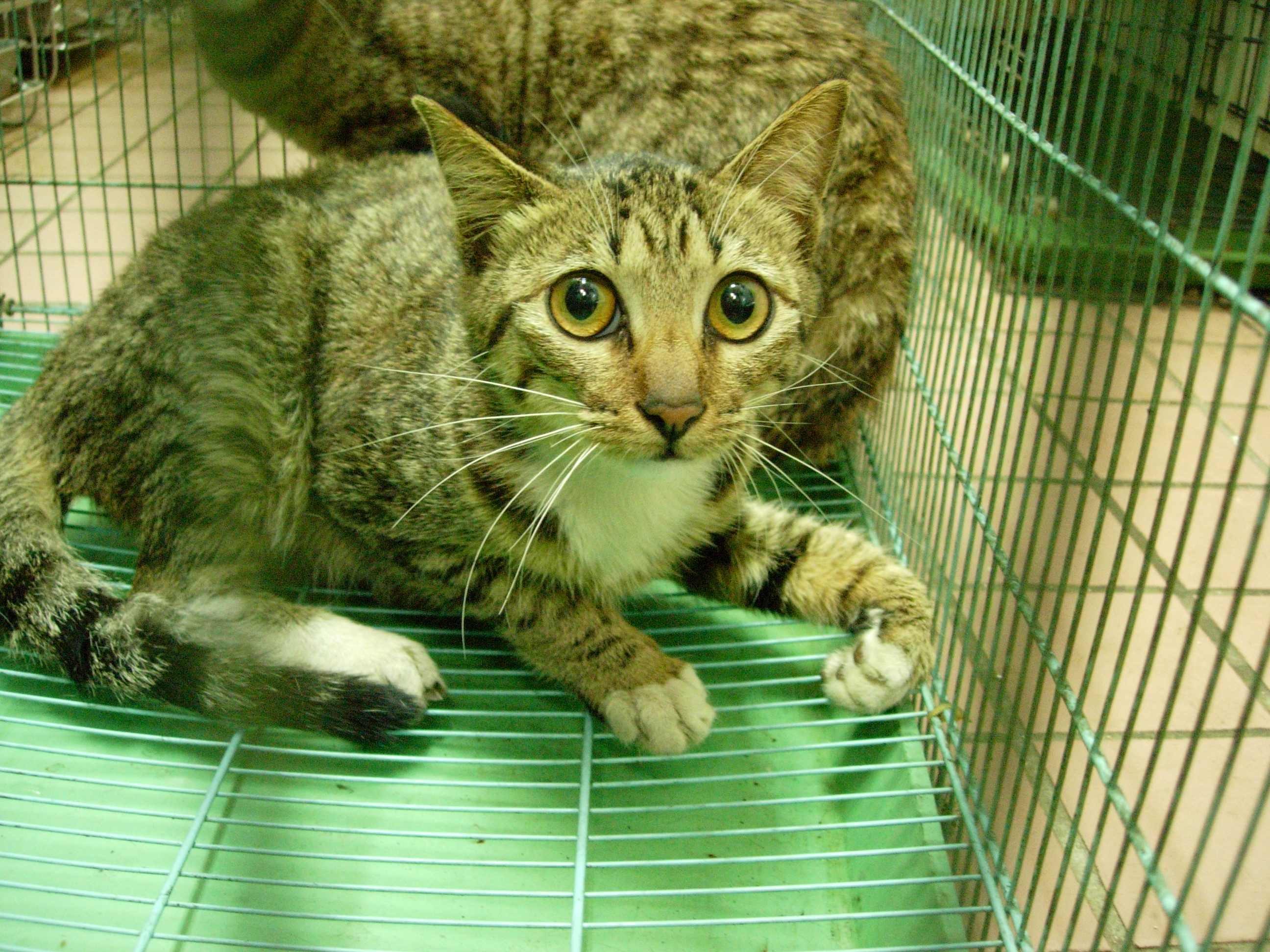 - 花色: 白底虎斑貓