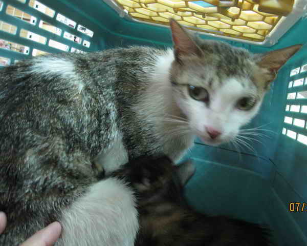 - 花色: 白底虎斑母貓