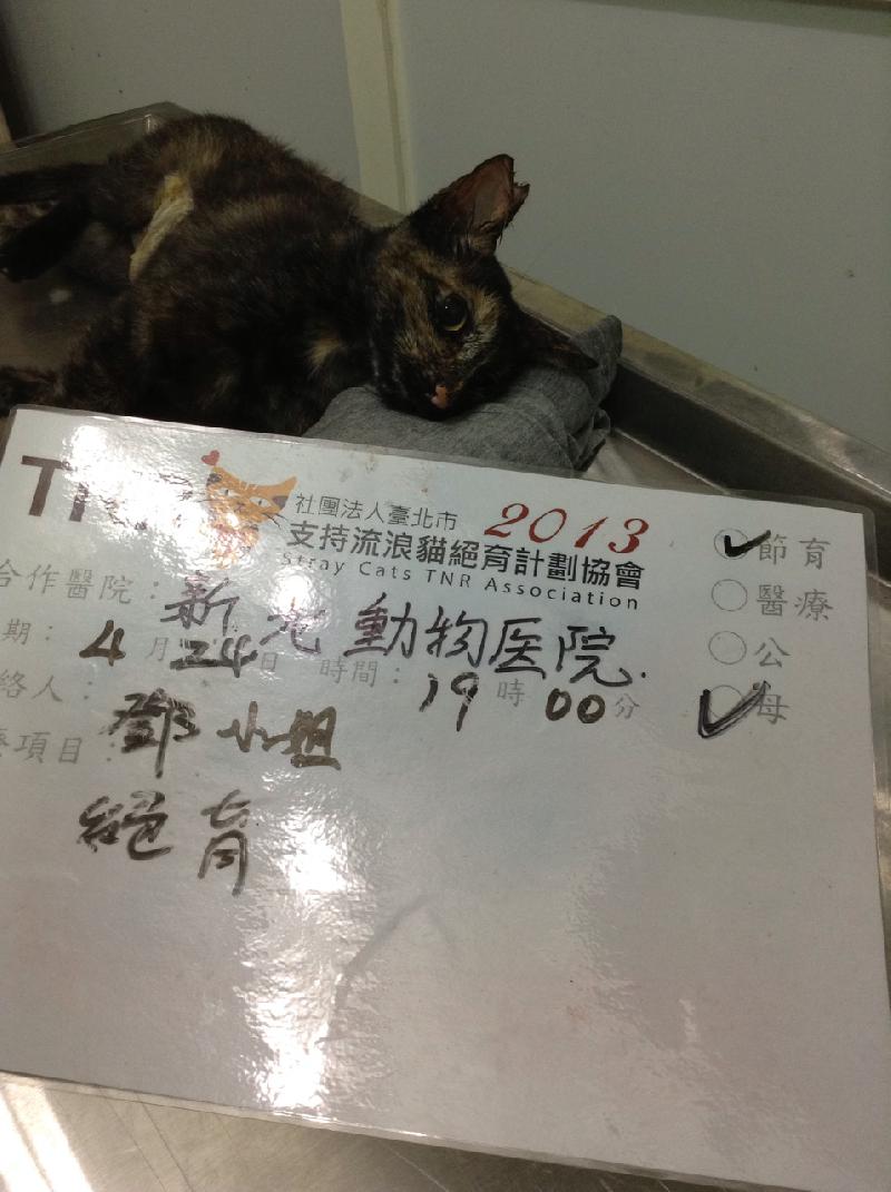 花色: 玳瑁 誘捕地點: 新北市汐止區水源路二段
