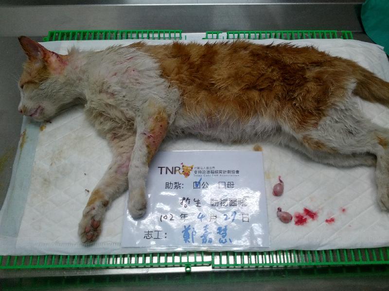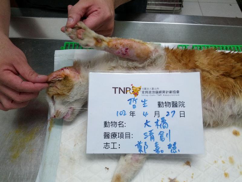 愛打架的公貓身上滿是傷口,拿掉蛋蛋後要做個乖寶寶喔^^