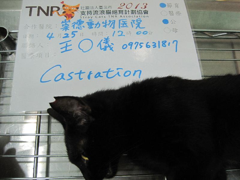 4�24晚間雖然多次被其他喵咪干擾,經過約1小時的誘導,終於誘捕成功!