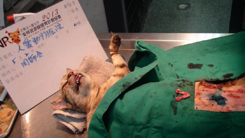 生活於鹿港國小垃圾場的母浪貓,未避免母貓繁殖,故進行結育!
