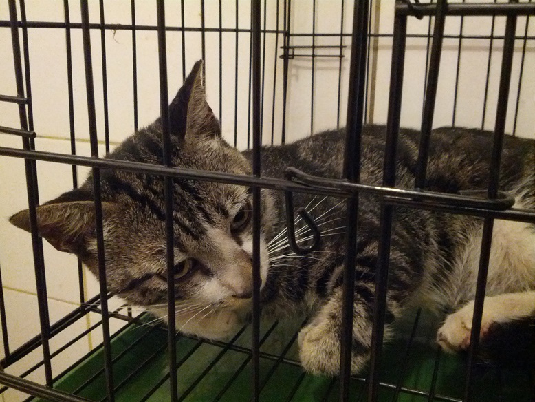 關渡宮美食區後方新移入虎斑公貓,因發情打架,漁民抱怨晚上太吵,加以誘捕結紮。