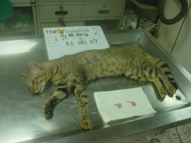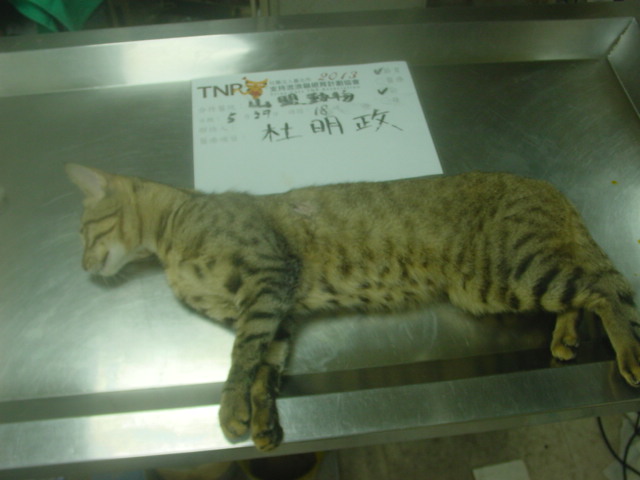 誘捕者暱稱: 臺北市支持流浪貓絕育計劃協會 性別: 公 花色: 虎斑 誘捕地點: 板橋防疫所 結紮醫院: 山盟動物醫院 結紮費用: 800 助紮者: 已付款:Chinju Changx3 額外醫療費用申請: 特別說明與誘捕心情: 繁殖潮來臨!各地收容所大爆滿,全都是貓,板橋防疫所內,更是貓滿為患,貓已經無籠位可放,小貓一籠一籠的,放於紙箱,放於外出籠內,5月29日,志工前去,將健康的貓,能野放的,先領出,共33隻,分送4家合作醫院進行絕育手術,並在安排野放,也暫時疏解了收容所的安樂的時間,希望有更多人能幫忙,一起幫貓咪結紮,或領出中途,免於被安樂死的命運。