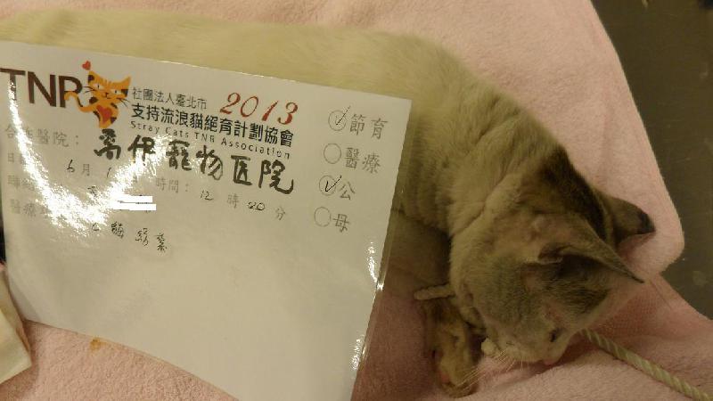 花色: 白底虎斑紋 誘捕地點: 新店區