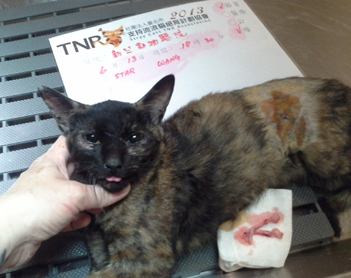 誘捕者暱稱: Star Wang 性別: 母 花色: 玳瑁 誘捕地點: 吉羊路 結紮醫院: 新竺動物醫院 結紮費用: 1500 助紮者: 已付款:珠喵x1, 靈異倩x1, 墨妍x1, AdaLinx2 額外醫療費用申請: 特別說明與誘捕心情: 吉羊路59~22巷中間的許多小巷弄間有許多貓穿梭。