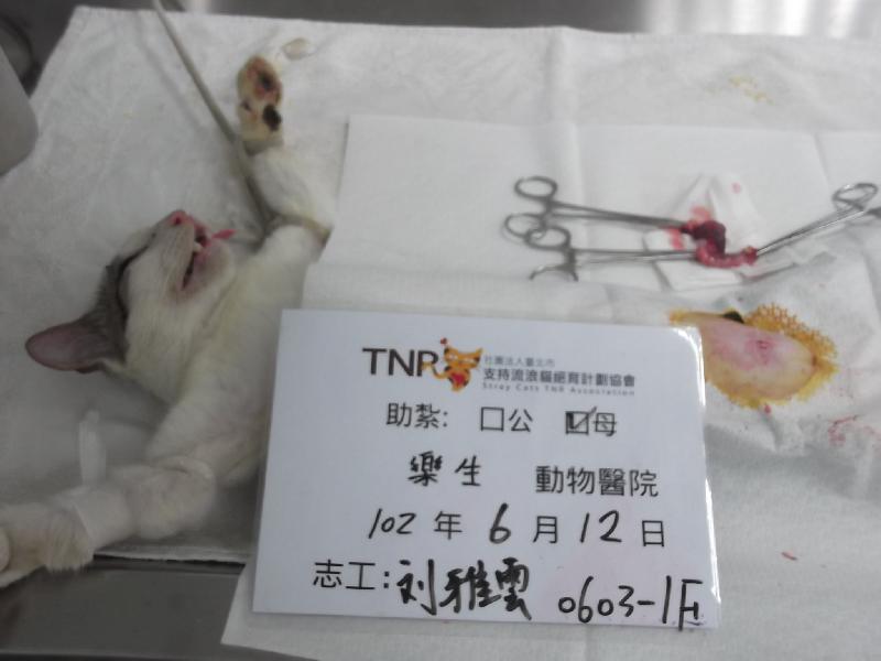 結紮醫院: 樂生動物醫院 結紮費用: 1200