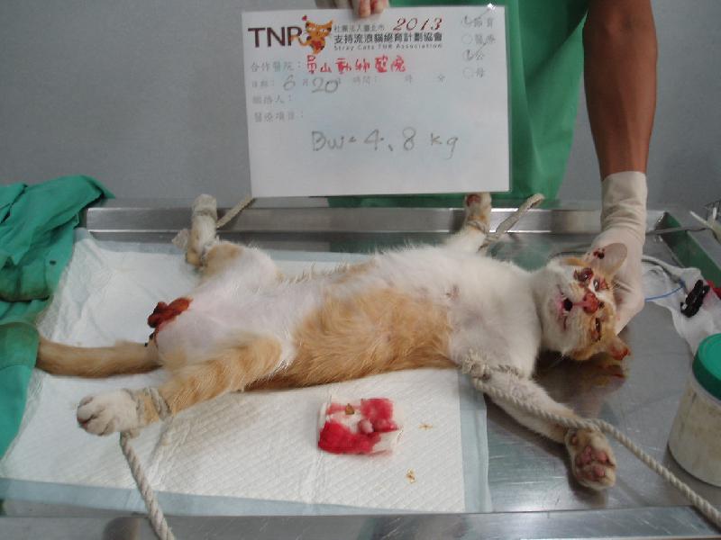 花色: 白底橘貓 誘捕地點: 中和/新生街