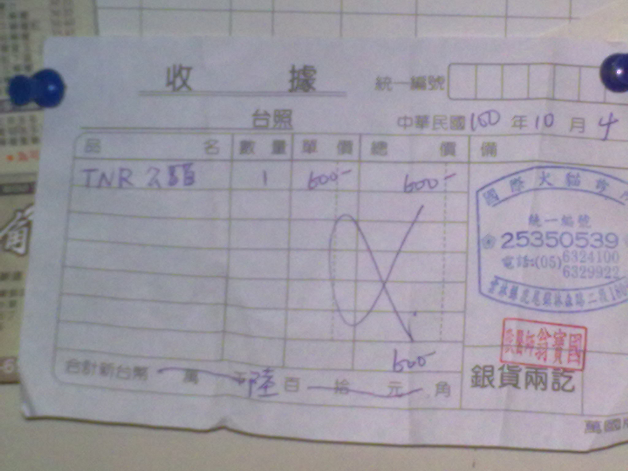 【捐款收據為線上自行列印,請參考http://www.tnrtw.org/news.php?news=421