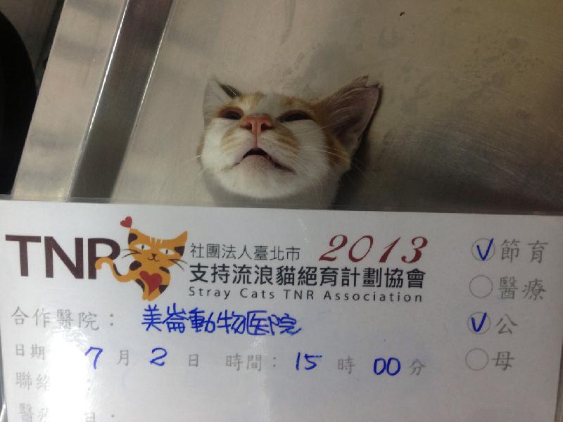 花色: 橘白色 誘捕地點: 花蓮市美崙市場裡