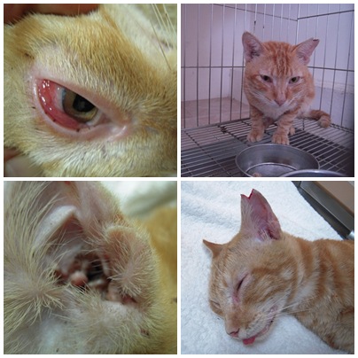 誘捕者暱稱: Vivi Sung 性別: 公 花色: 橘子 誘捕地點: 高雄 結紮醫院: 藍天動物醫院 結紮費用: 700 助紮者: 已付款:Yang Mi, amykuan 額外醫療費用申請: 1400(於特別說明說明) 特別說明與誘捕心情: 橘貓剛到院的時候可見身體多處傷口(耳後 右頸),鼻子有膿樣分泌物雙眼睫膜充血打噴嚏並伴有很大的呼吸聲等症狀,麻醉後耳道內可見耳疥蟲且雙耳有多量黑色耳屎,耳後因為耳疥蟲造成的劇癢而抓傷 經七天的治療後橘貓食慾排便皆正常。