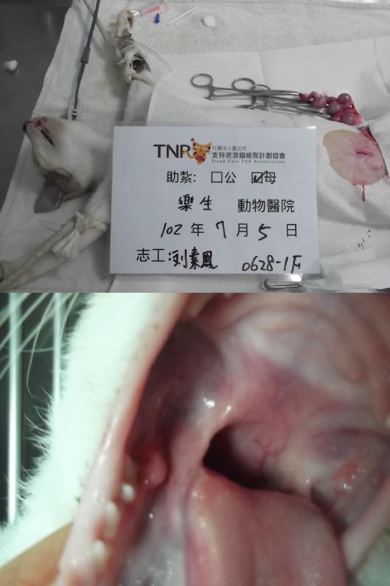 誘捕者暱稱: 劉素鳳 性別: 母 花色: 三花 誘捕地點: 義民巷182-4號 結紮醫院: 樂生動物醫院 結紮費用: 1200 助紮者: 已付款:白婷x1, 布蘭卡小姐x1, Cate Huangx1, Cate Huangx1, Cate Huangx1, Cate Huangx1, 白婷x1 額外醫療費用申請: 800 特別說明與誘捕心情: 這邊義民路彎彎曲曲的每一條巷子裡都有躲著貓咪, 居民有的愛貓, 有的討厭貓, 來這裡宣導TNR並誘捕貓咪結紮. 這邊的貓都不太健康, 此貓有扁桃腺腫, 0628進院後先治療, 7/5狀況ok了才結紮. 申請藥費兩週800 0628-1F