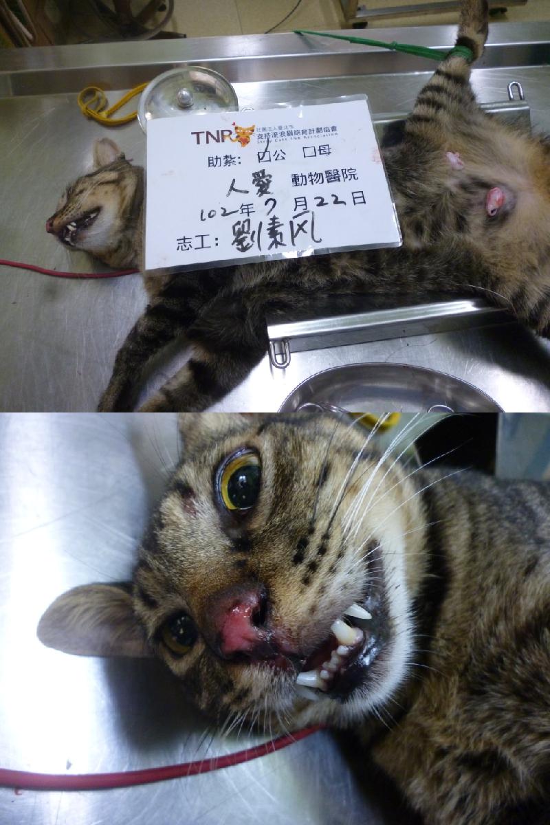 這是經通報在鳳山平等路的老人公寓這邊有很多貓咪, 旁邊一些居民不喜歡貓並且貼著禁止餵食, 經過志工前去TNR並與居民溝通跟他們宣導餵養這些浪貓可以多點福報, 居民們態度已有改善. 第一趟誘捕了9隻, 每隻貓都有鼻氣管炎, 咳嗽, 或口炎等問題. 此貓有上呼吸道感染和鼻水申請醫療費與藥費1000元 0722-7 <老人公寓專案: 7/22第7隻>