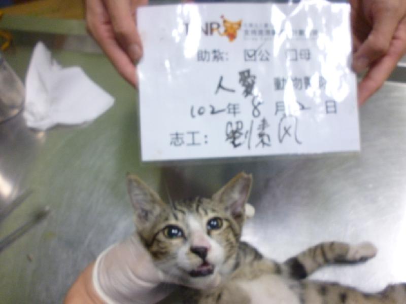 花色: 白底虎斑 誘捕地點: 道明中學旁