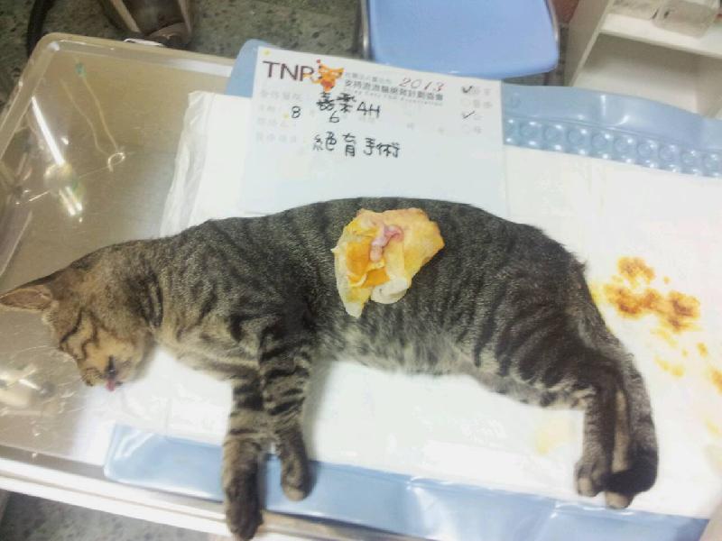 其實這是意外插曲,虎斑弟是第一次來覓食的食客,本來是要誘捕其他已結紮的浪浪來打狂犬疫苗,結果反而是騙到這隻未結紮的虎斑弟。以他體型來看,我很懷疑是這次狂犬病恐慌下的犧牲者。希望大家可以理性點不要亂棄養貓狗。