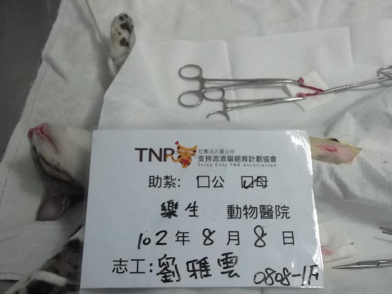 結紮醫院: 樂生動物醫院 結紮費用: 1200