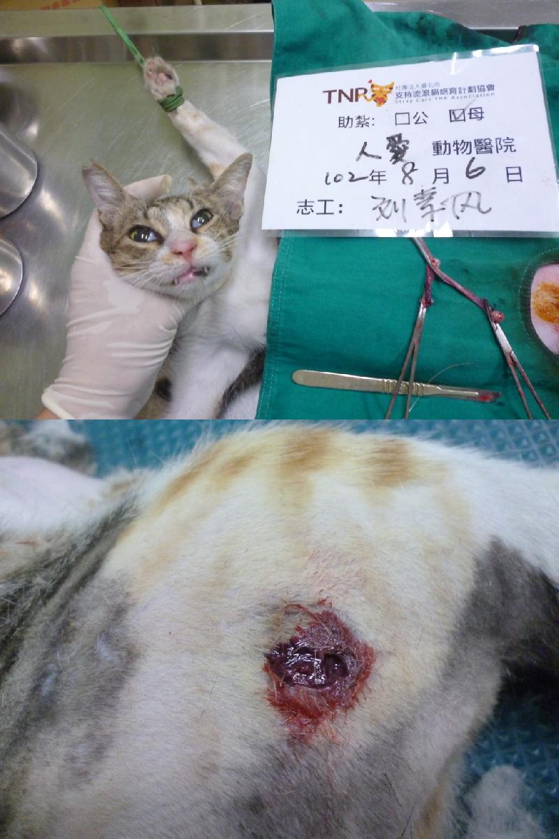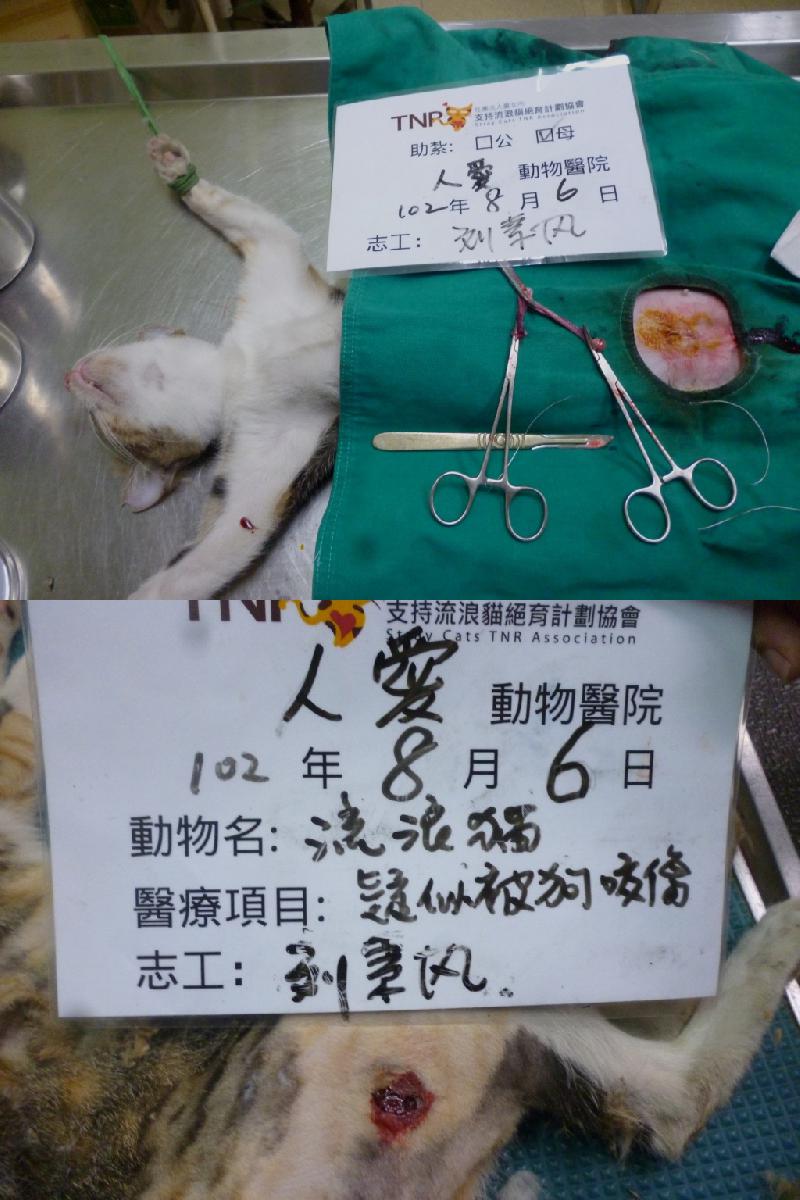 在六合一路誘捕到結紮的貓, 到院發現有被狗咬傷治療中 0806-2