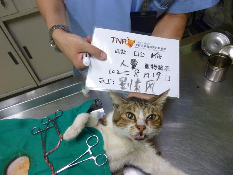 這是在河川路捕獲的白底虎斑母貓, 已順利到院結紮並施打狂犬疫苗, 感謝大家的善心助紮. 0819-1F