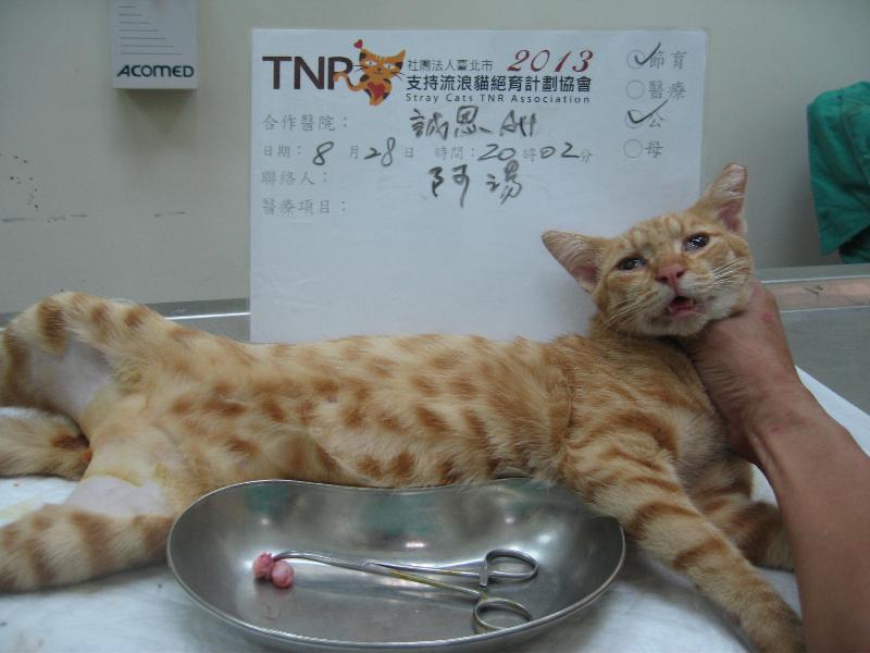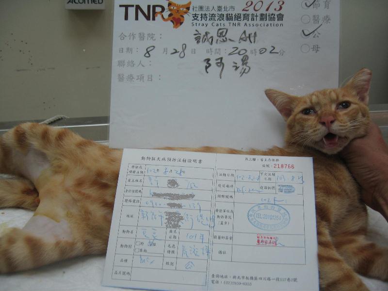 在黃昏市場小吃店營業時,看到街貓會在店門口排徊,查看後是未結紮,經多次餵食成功誘捕,並已施打狂犬病疫苗。
