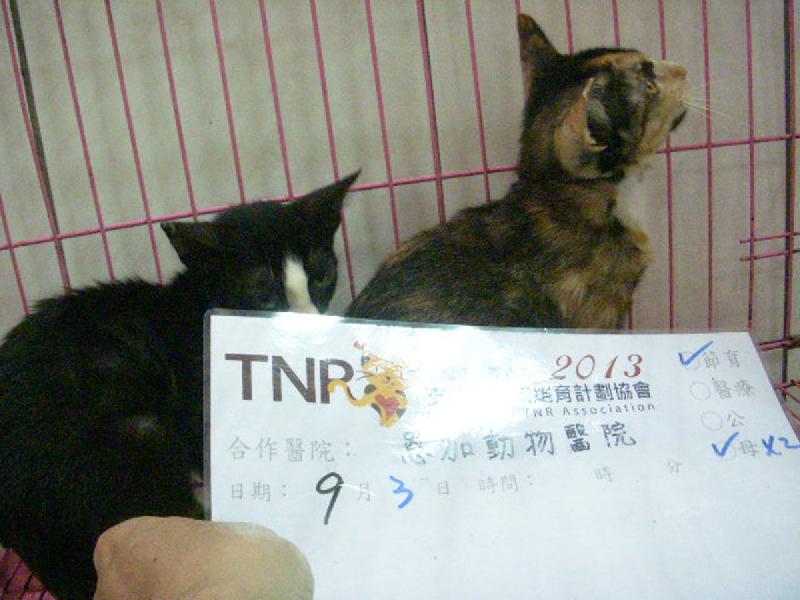 誘捕者暱稱: 小葦 性別: 母 花色: 玳瑁 誘捕地點: 民權東路三段 結紮醫院: 恩加動物醫院 結紮費用: 1500 助紮者: 已付款:Anniex3, 阿貝x6 額外醫療費用申請: 1000 特別說明與誘捕心情: 民眾求援協會在民權東路市場裡有許多貓咪需要結紮,到現場發現六七隻貓咪,其中兩隻比較小的玳瑁有鼻氣管炎,一起捕捉送醫治療。橘虎斑和玳瑁一起進籠...兩隻一樣貪吃,再來捕捉黑白公貓、黑母貓,連同生病的兩貓共六隻。另還有一隻橘母貓和未知性別的黑貓在逃~~